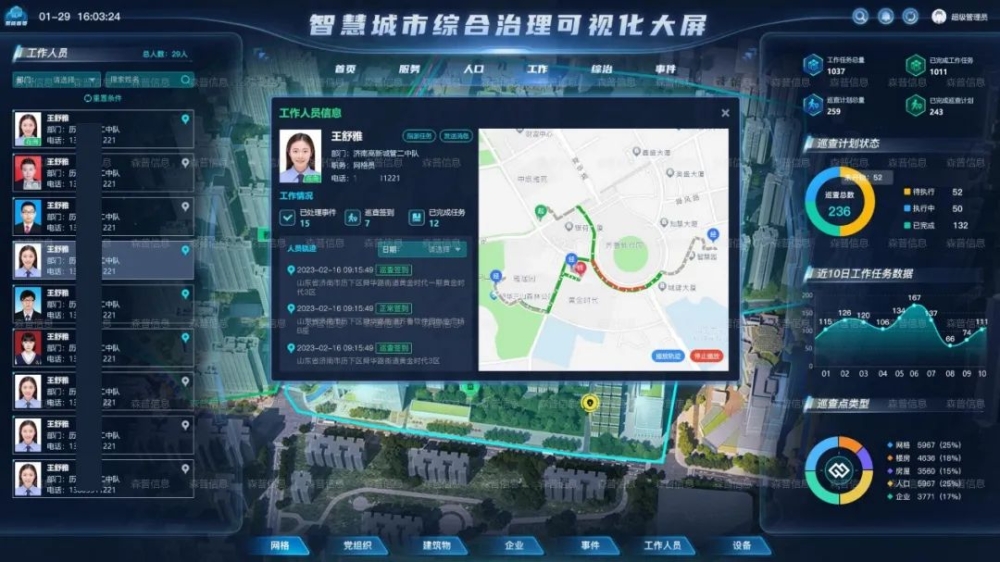 城市的公共安全直接关系到居民的生活安宁。一网统管通过视频监控系统,实现对城市公共区域的全面监控。结合人工智能技术,系统能够自动识别异常行为,如非法入侵、火灾等,一旦检测到可疑情况,立即通知安全管理部门,快速响应处理,提高城市的安全防范能力。同时,感知、整合综合治理数据,对特殊人群、重点人员、信访数量、事件数量、重点事件类型对比、重点企业实时关注,帮助管理者实时掌握辖区的人员分布及实时画面情况,对可能出现的公共安全问题进行及时的响应和处置。